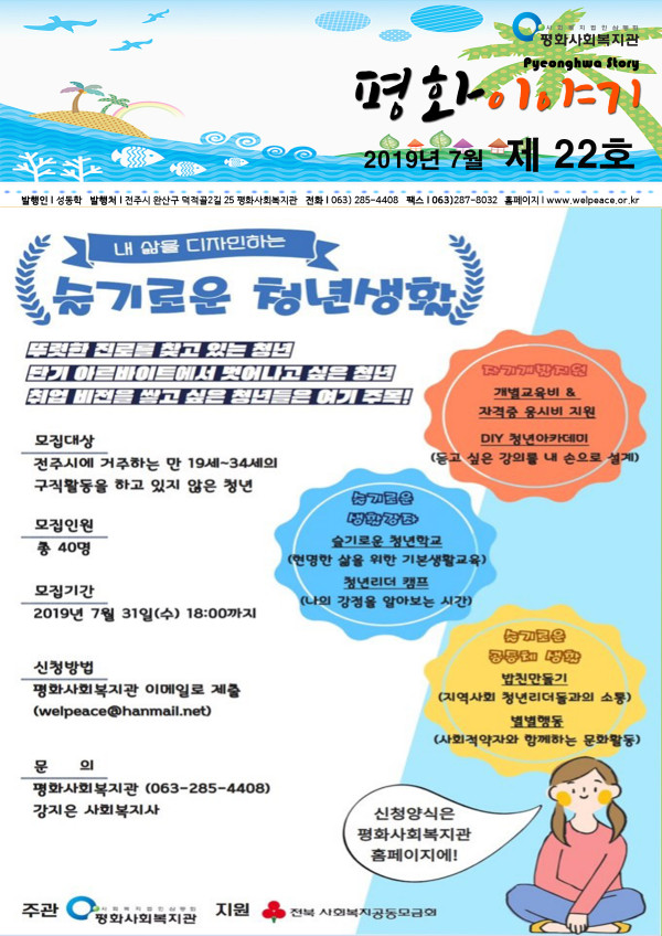 평화사회복지관 7월 소식지 페이지 정보 작성자 평화사회복지관 댓글 0건 조회 2,004회 작성일 19-07-31 05:07 본문 목록 이전글2020년 평화사회복지관 2월 소식지 20.03.02 다음글평화사회복지관 11월 소식지 18.12.04 댓글목록 댓글목록 등록된 댓글이 없습니다.
