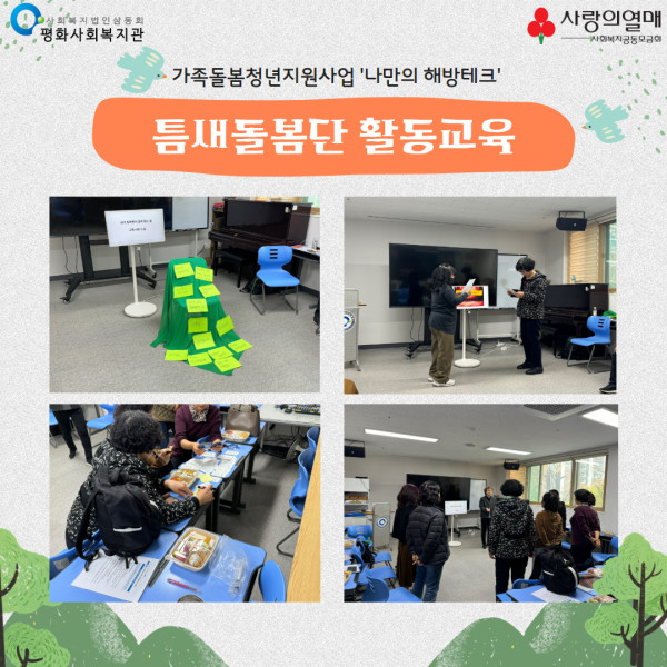 1년에 두 번 활동교육을 통해 틈새돌봄단으로서의 역량을 강화하고