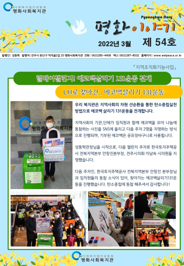 2022년 평화사회복지관 3월 소식지 페이지 정보 작성자 관리자 댓글 0건 조회 1,178회 작성일 22-04-01 08:42 본문 목록 이전글2022년 평화사회복지관 4월 소식지 22.04.30 다음글2022년 평화사회복지관 2월 소식지 22.02.28 댓글목록 댓글목록 등록된 댓글이 없습니다.