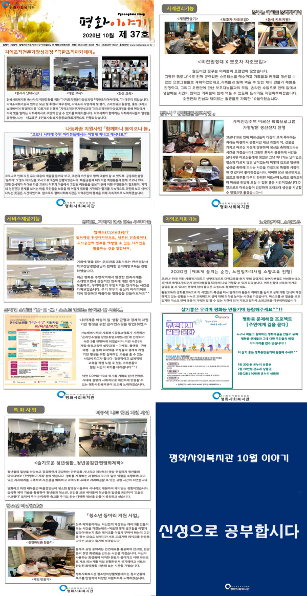 2020년 평화사회복지관 10월 소식지 페이지 정보 작성자 평화사회복지관 댓글 0건 조회 2,277회 작성일 20-11-30 05:11 본문 10 목록 이전글2020년 평화사회복지관 11월 소식지 20.11.30 다음글평화사회복지관 2월 소식지 19.03.04 댓글목록 댓글목록 등록된 댓글이 없습니다.