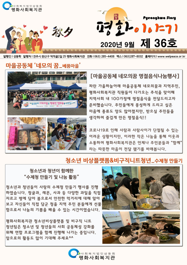 2020년 평화사회복지관 9월 소식지 페이지 정보 작성자 평화사회복지관 댓글 0건 조회 2,255회 작성일 20-10-05 03:10 본문 목록 이전글2020년 평화사회복지관 6월 소식지 20.06.30 다음글2020년 평화사회복지관 12월 소식지 20.12.31 댓글목록 댓글목록 등록된 댓글이 없습니다.