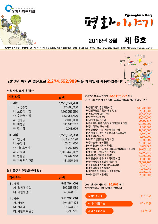 평화사회복지관 2018년 3월 소식지 페이지 정보 작성자 평화사회복지관 댓글 0건 조회 2,213회 작성일 18-03-30 06:03 본문 목록 이전글평화사회복지관 2018년 2월 소식지 18.03.20 다음글평화사회복지관 2017년 소식지 18.01.02 댓글목록 댓글목록 등록된 댓글이 없습니다.