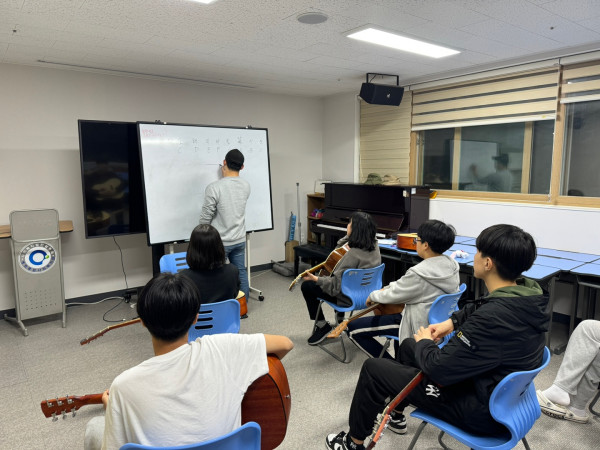 처음 기타를 접하는 청소년들의 모습에서 어색함이 나타나지만, 진지한 모습으로 기타에 대한 설명에 참여했습니다.