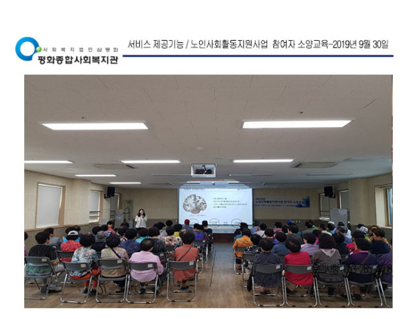 2019년 노인사회활동지원사업 참여자 소양교육(치매예방교육)