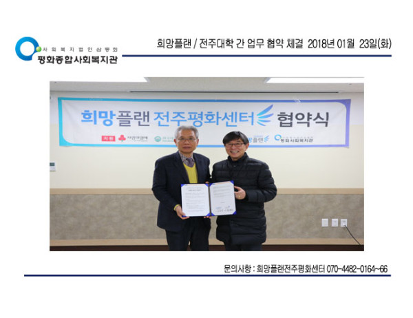 희망플랜전주평화센터 전주대학 간 협약식 진행