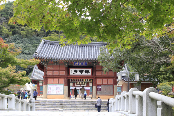 작품명:가을이지만 단풍에 물들지 않는 나무와 산속의 다리 위 선운사